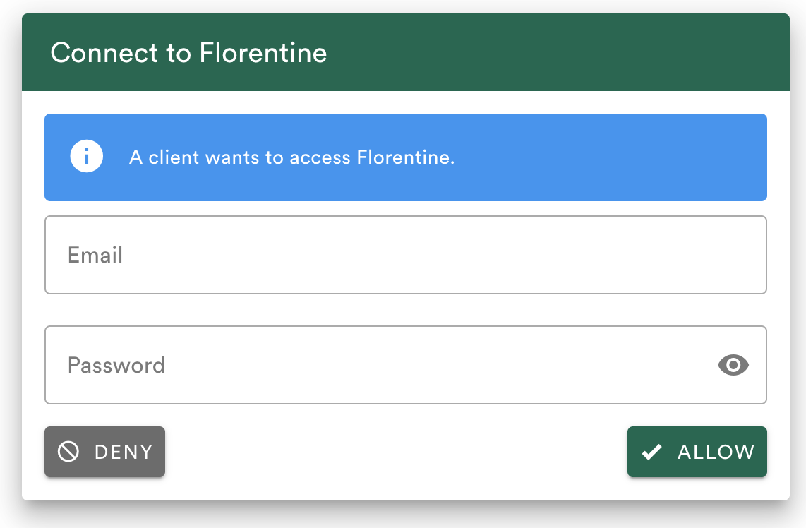 The AI app will redirect you to Florentine's OAuth flow where you are asked to provide your login credentials and allow access for the client: